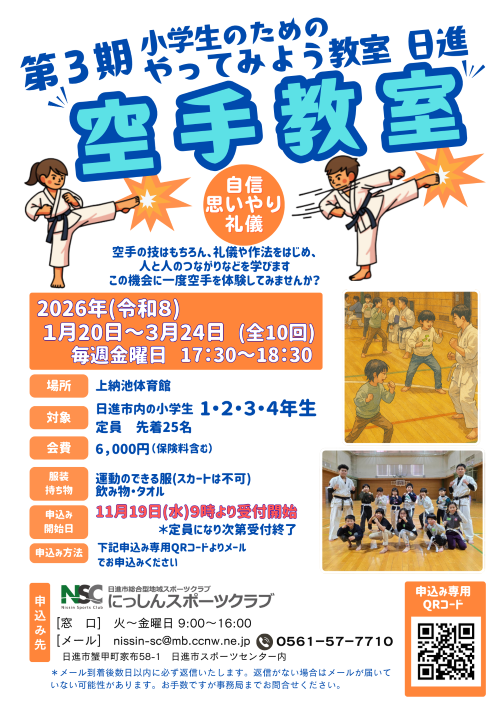 小学生のためのやってみよう教室 日進【第3期空手教室】申込み受付けが始まります!